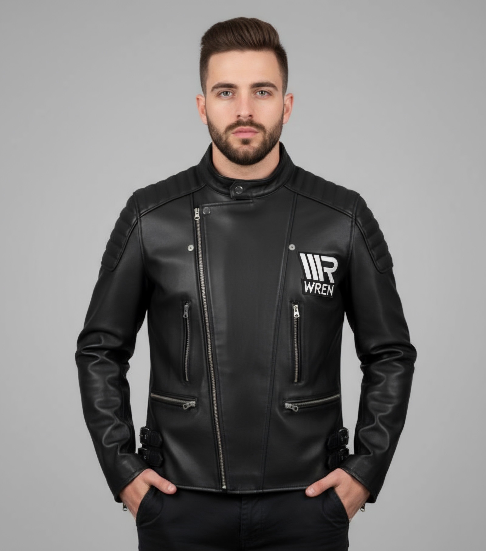 Accented with the signature WREN monogram, this jacket merges contemporary craftsmanship with the essence of modern luxury — making it an essential statement piece in every discerning wardrobe.